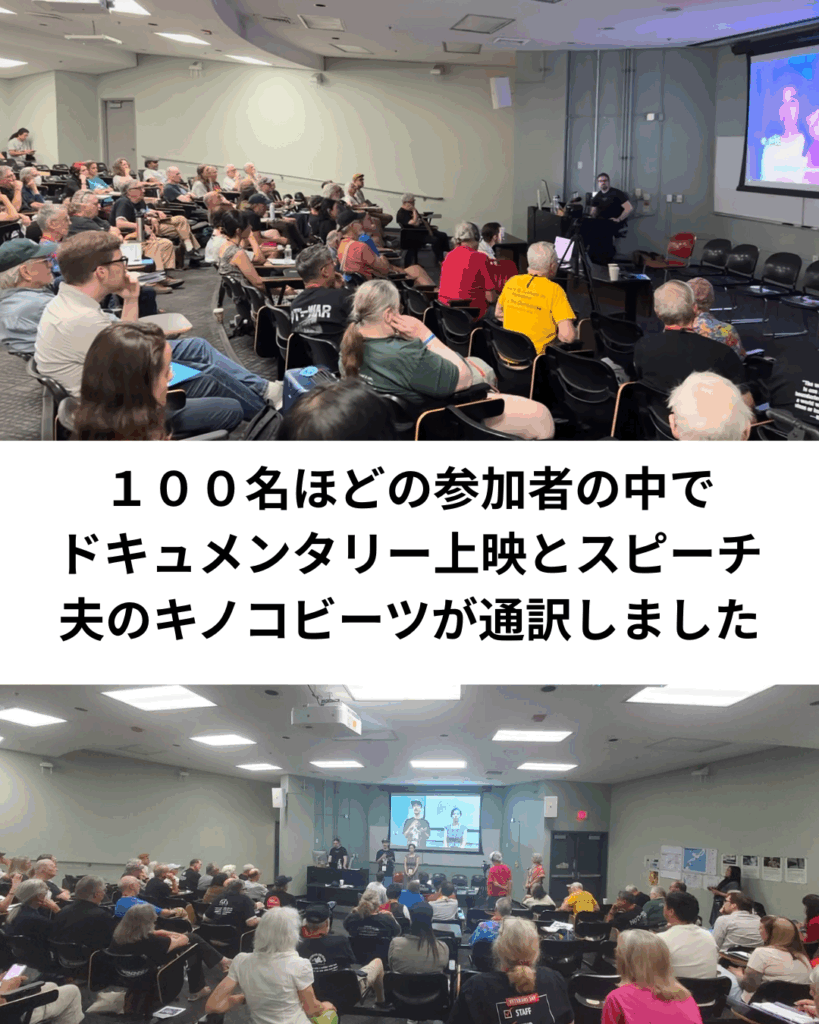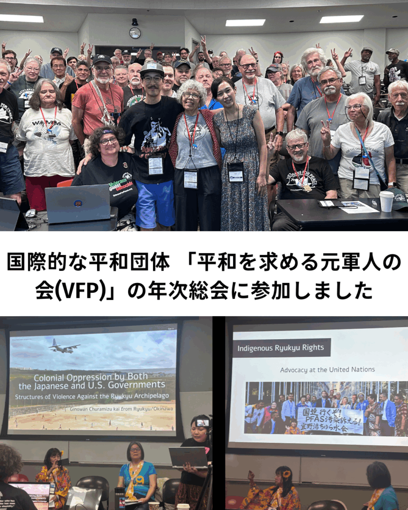 またVFP の琉球・沖縄国際支部であるVFP-ROCKは名護市辺野古の新基地建設反対と、浦添西海岸への那覇軍港移設反対の決議案を夫のキノコビーツとハワイから駆けつけてくれたピート・ドクトルさんが提出し、満場一致で可決されました。